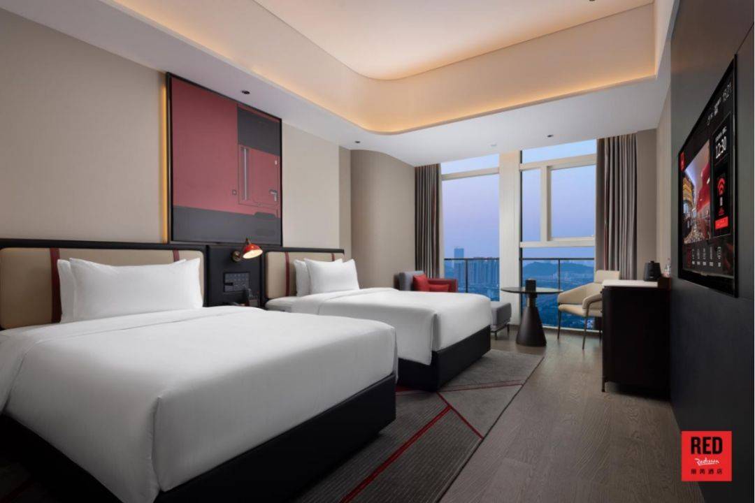 定位为高端生活方式酒店的丽芮酒店Radisson RED创立于2014年,以红色为灵感,秉承了新颖独创的设计,呈现出大胆无畏和风趣诙谐的态度,并通过轻松自在和无拘无束的服务方式,为旅人带来活力焕发的新体验。丽芮在中国,秉承一店一设计的原则,每一家店都是“品牌文化+在地文化+投资人情怀”的融合呈现。李建炜所投资的广州南站丽芮酒店同样如此,它精准提取“怀旧火车站”的设计元素,融入当下广州人自洽、时髦的现代文化,给人带来新奇的体验;而且作为资深球迷,他将自己的兴趣爱好投注于这家店,“足球”元素随处可见。