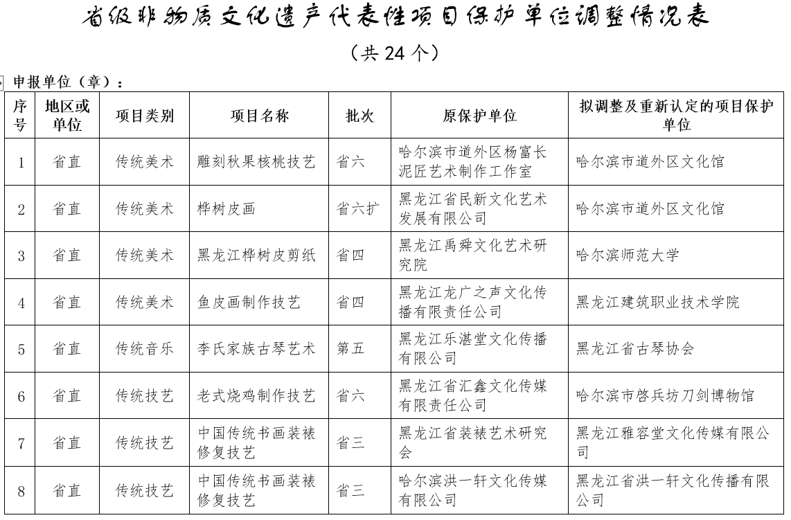 原标题:黑龙江调整部分省级非遗代表性项目保护单位