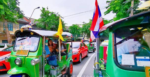最接地气逛泰国的交通方式是搭乘嘟嘟车。根据公布的交通流量数据显示,泰国曼谷成为了2017年世界第一堵城。嘟嘟车因为小巧轻便,速度快,成为堵城最佳交通方式。加上车上摇滚灯光,超嗨音乐,花俏装饰,在大马路上特别拉风哦。