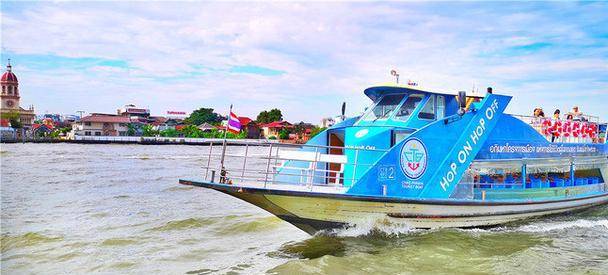而另一种不可错过的交通工具就是游船。湄南河是泰国第一大河,自北而南地纵贯泰国全境。码头的船很多,其中蓝旗船就是观光船,船身上有写hoponhopoff(随上随下的意思)会在几个主要观光点的码头停靠,船上会有导游以英语沿河介绍著名景点。
