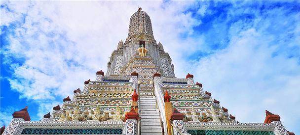 和曼谷大多数金碧辉煌的寺庙相比,郑王庙显得与众不同。不仅与华裔的民族英雄郑昭有关,更拥有“泰国埃菲尔铁塔”之美称的巴壤塔。尖塔外面装饰以复杂的雕刻,并镶嵌了各种彩色的陶瓷片、玻璃和贝壳等,是泰国规模最大的一座大乘塔,精美程度让人惊叹,艺术价值更是有目共睹。
