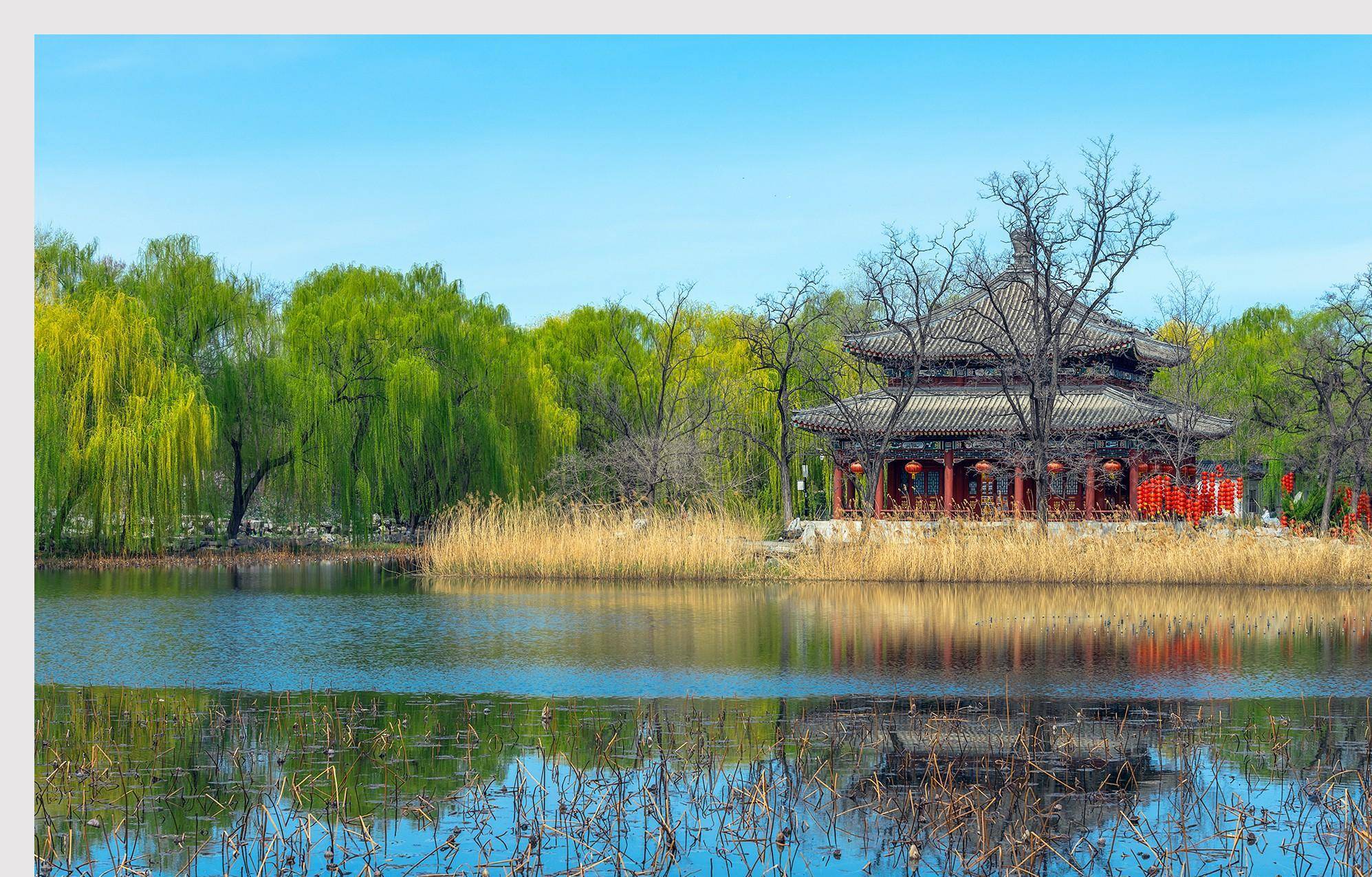 圆明园内水系纵横,可以巧妙利用水面的倒影来增加照片的看点,有些水面会反射出好看的天色,有些水面会有质感出色的水纹,利用好这些水的元素,不管是水面的镜像倒影还是水波的柔化,都会使照片更加的灵动有趣。