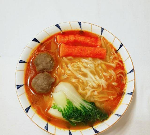 一碗热气腾腾的面上桌,这热气,有着诱人的香味,夹杂着肉丸、蟹棒、青菜、白面的香,浓郁的麻辣香使人食欲大增回味无穷。