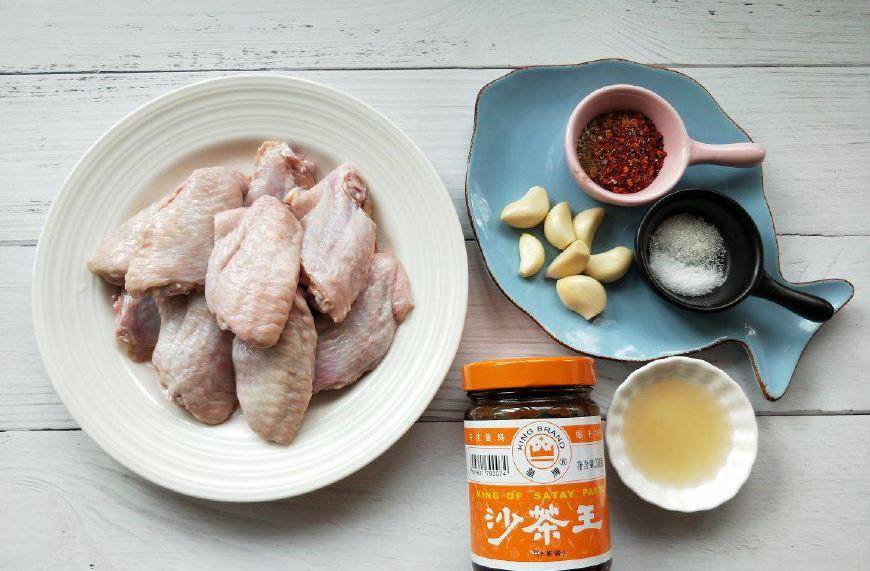 主料:鸡中翅,大蒜(我喜欢放),沙茶酱