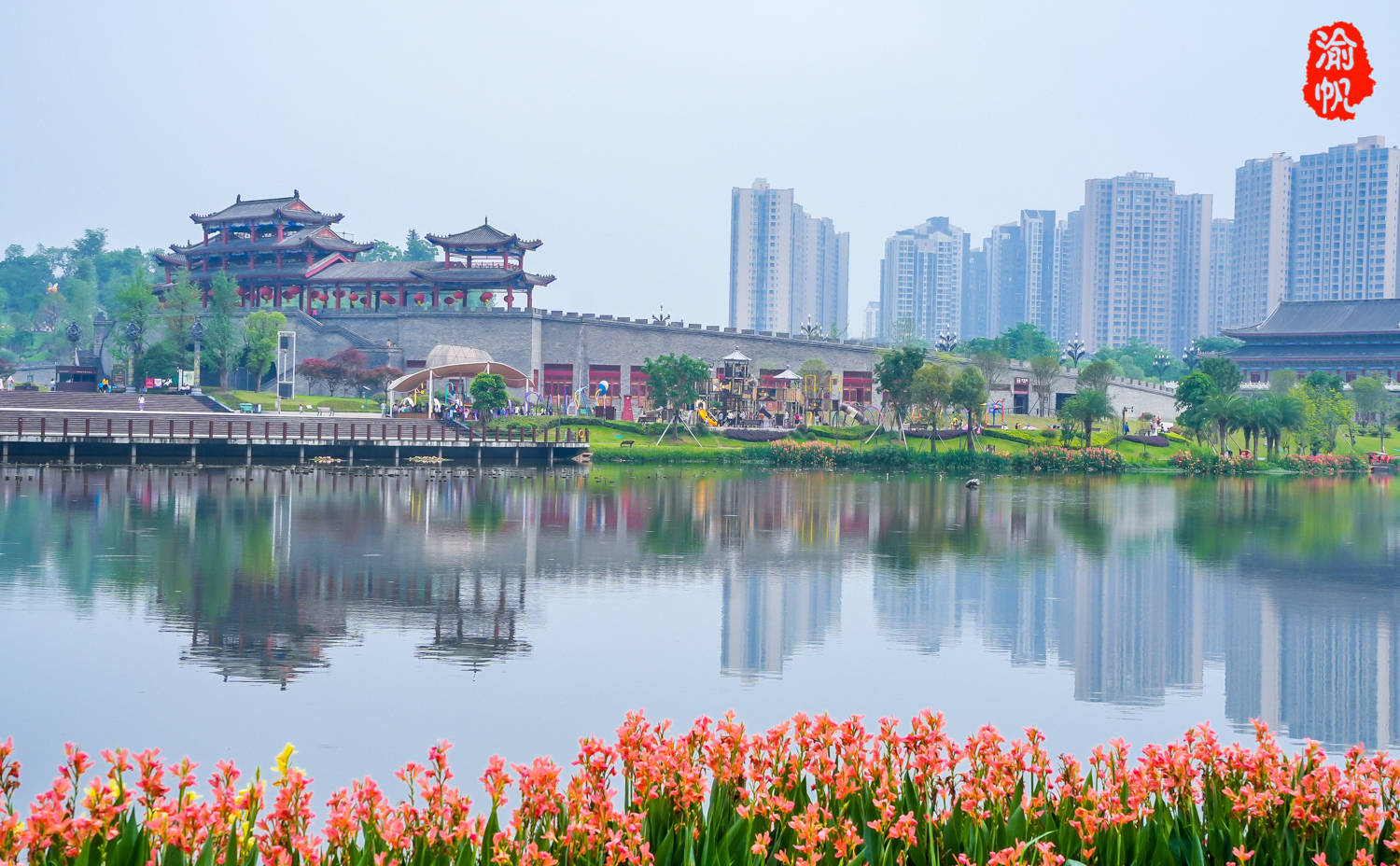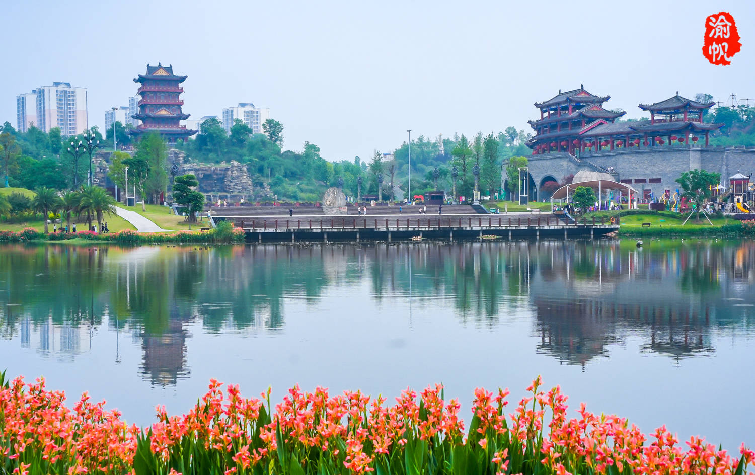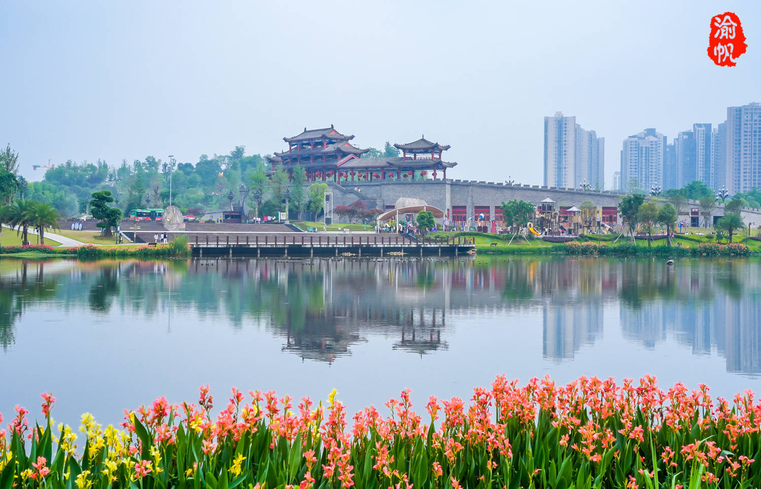 这个4A级旅游景区名为香国公园,位于大足区的海棠新城,交通十分便利,它以海棠香国文化为主题,占地1300亩,其中绿地、水体占840亩,总投资近2亿元,却不收门票,对于游客与市民而言,真是太幸福了。