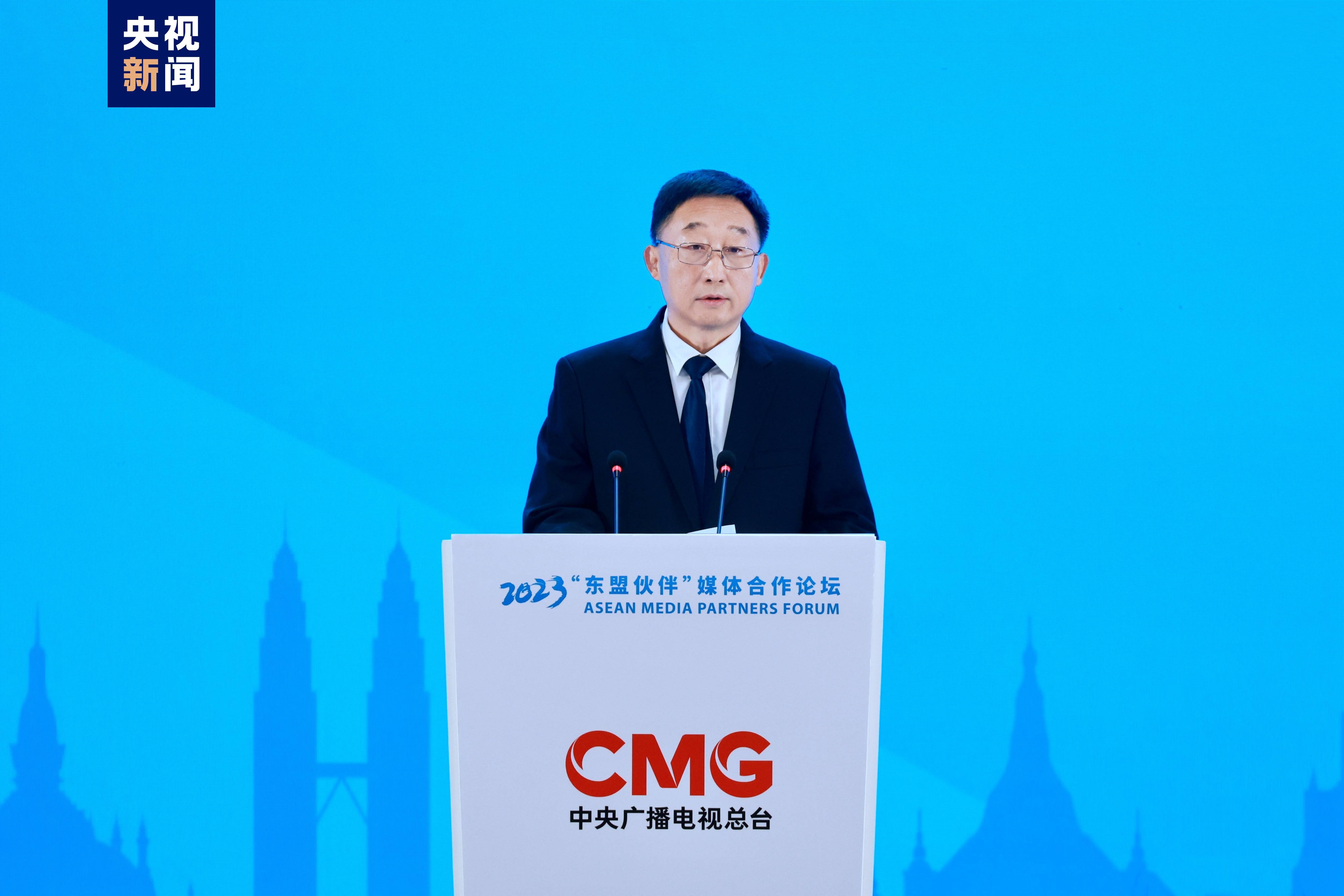 慎海雄在致辞中指出,习近平主席高度评价中国与东盟合作,寄予了“共建和平、安宁、繁荣、美丽、友好‘五大家园’,构建更为紧密的中国—东盟命运共同体”的殷切期望。将美好蓝图化为现实,离不开媒体的努力。作为当今世界体量规模最大、业务形态最多、覆盖范围最广的综合性国际传媒航母,近年来中央广播电视总台与东盟国家媒体交流日益紧密,合作成效显著。我们与老挝、柬埔寨、泰国、缅甸、印尼、马来西亚等6个国家的主流媒体联合制作10档电视节目,打造让广大受众耳目一新、想听爱看的全媒体产品,向全球受众展现真实、立体、全面的中国和东盟。