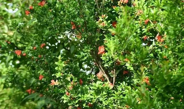 六月的石榴花在蓝天白云下开得异常鲜艳,在家门口形成了一道迷人的风景。
