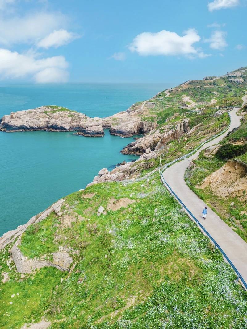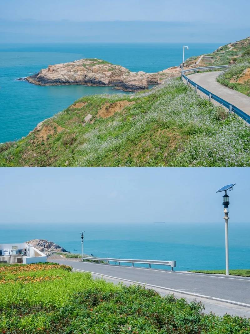 1、南岙码头,也就是下船的点,弯曲的公路边种满萝卜花,一边是海,一边是鲜花,非常浪漫,傍晚三四点去拍更美。