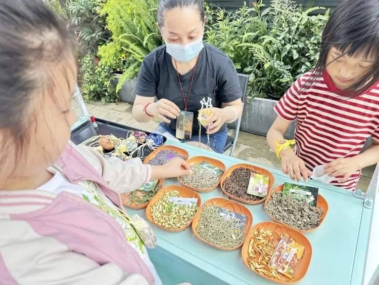 民间手工艺师傅们也准备了丰富的小礼品。面塑师傅捏出了一个个小巧玲珑的面人。手工香包师傅向小朋友们讲解了香包的制作过程,由天然草药制作而成的香包具有驱蚊、提神、助眠等各种功效,在师傅的指导下,小朋友们动手制作了属于自己的香包。