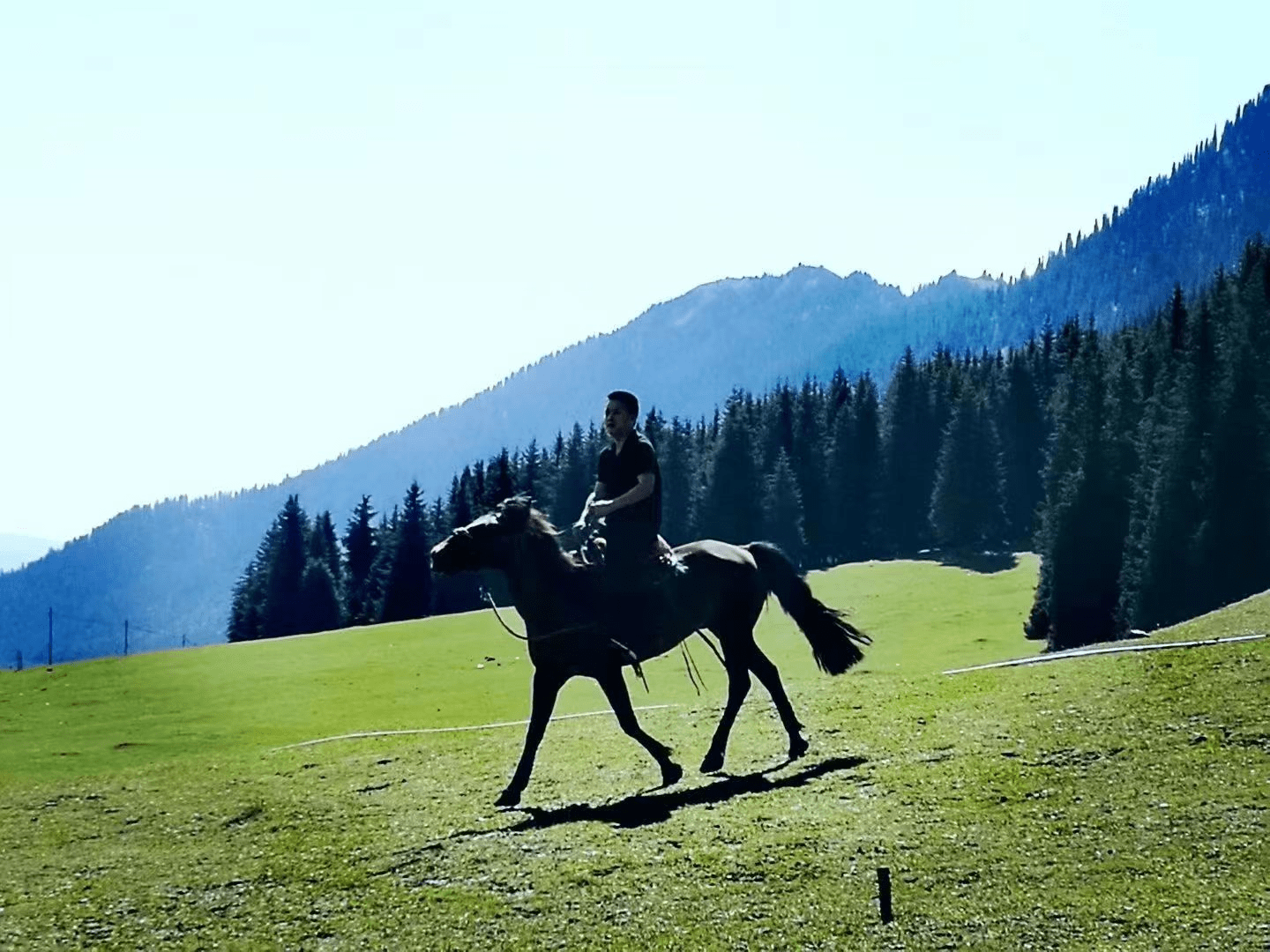 我们的车穿行在巩乃斯草原上,沿途汽车很少,偶尔可以看见河谷里几座毡房。一路上几乎看不到人。这一次,才真正知道了什么叫地大物博,人烟稀少。