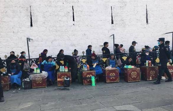 大昭寺广场上阳光泛滥,几人坐在广场边,看着行人过往,拍拍照,开开玩笑,偶尔帮游客忙,替他们拍照留影,不使坏也不压抑内心,便已是闲情至极。