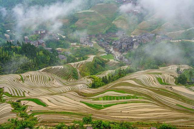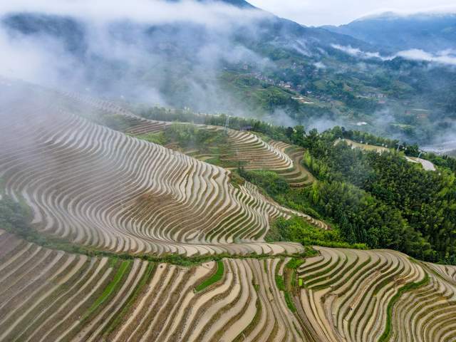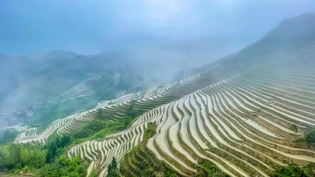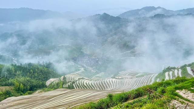 虽然天公不作美,一路上都下着雨,但这种雨中的梯田景观,多了一层如梦如幻的薄雾,跟仙境一样瑰丽的自然风光,让我感受到龙脊梯田的另一种美。