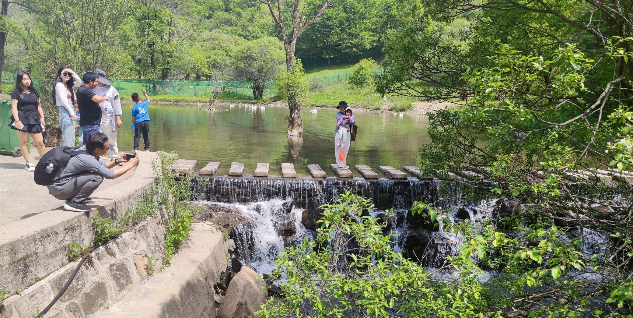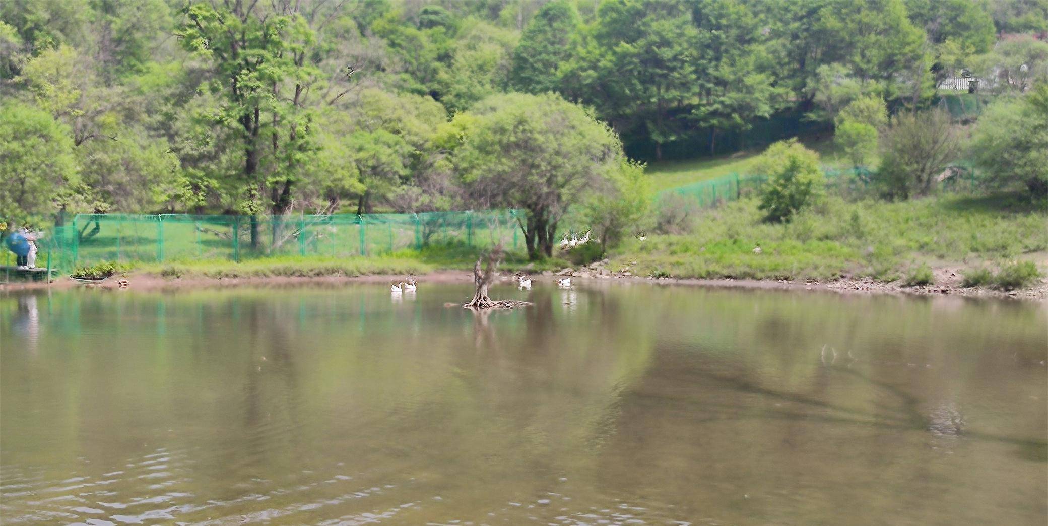 车子又走了五六公里,终点站到了。眼前溪水潺潺,聚成一个很大的水潭,水中居然有雪白的天鹅。