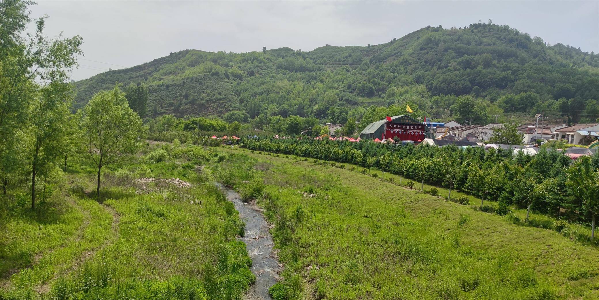 在另一处空地上搭了个流动舞台,有小姐姐在台上唱歌跳舞,标注着天水某演艺公司。这才想起此处已靠近甘肃。