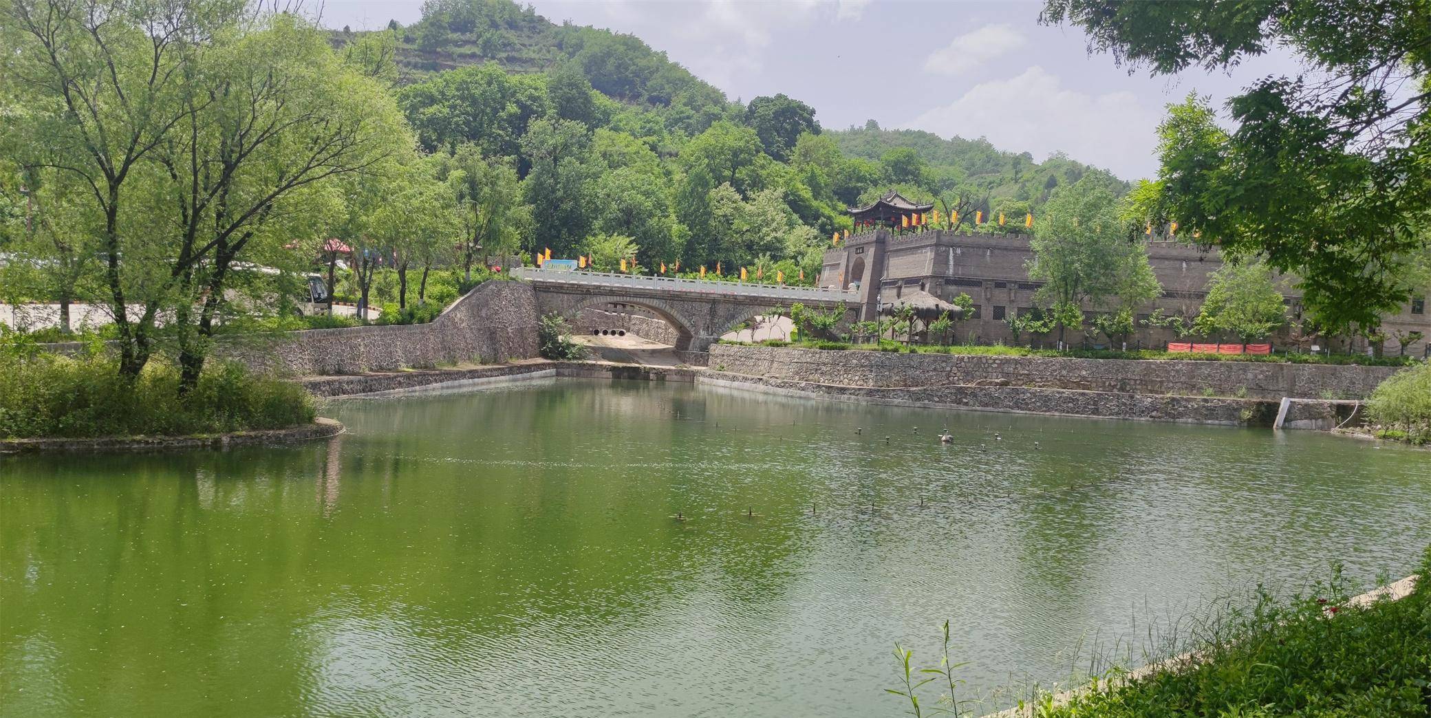 有古城、有山水,这个景区好像有点与众不同,不虚此行矣!再往前走,看到对面有游客中心,过去询问才知道,原来我们还没有进景区。大水川是要门票的,七十多,另要买六十多的观光车。