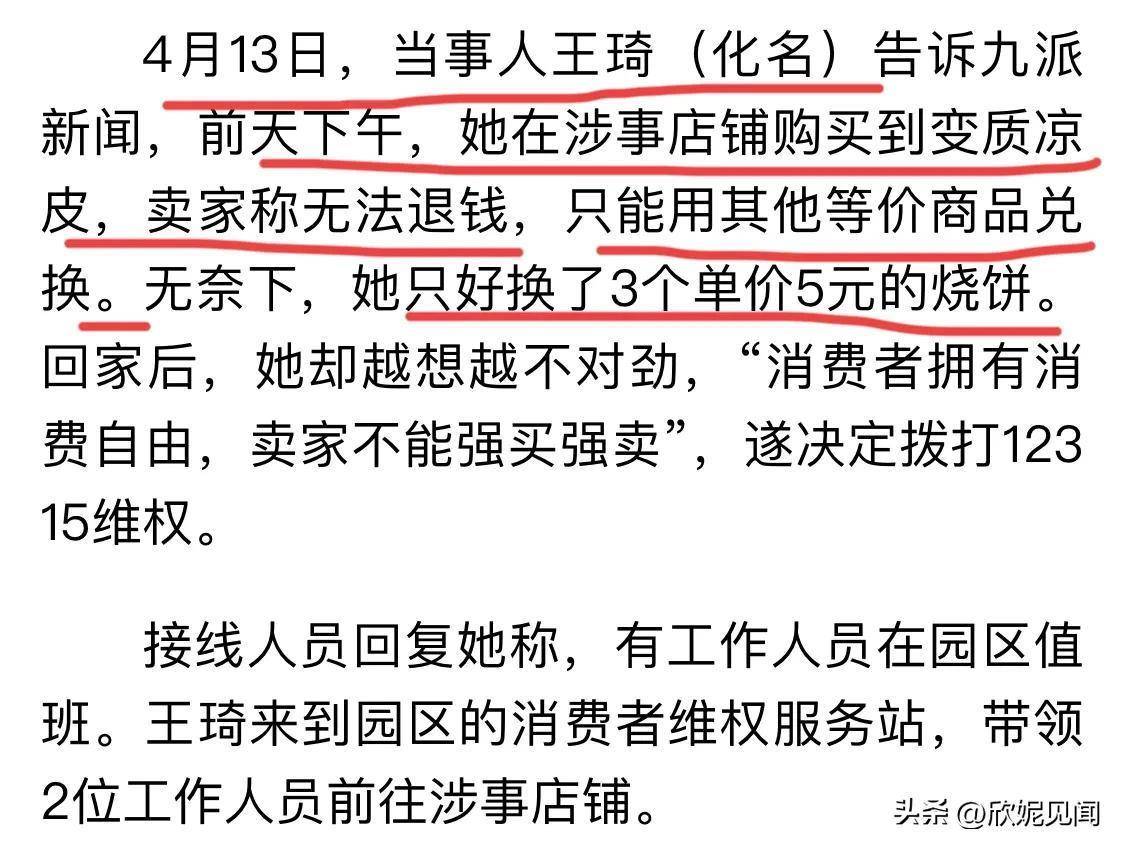我去找老板要退款,老板说只能换其他等价的东西,她就换了三个烧饼5块钱。