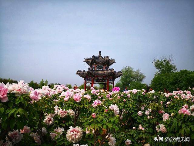 山东菏泽风景秀丽的曹州牡丹园15元一碗变质凉皮的背景