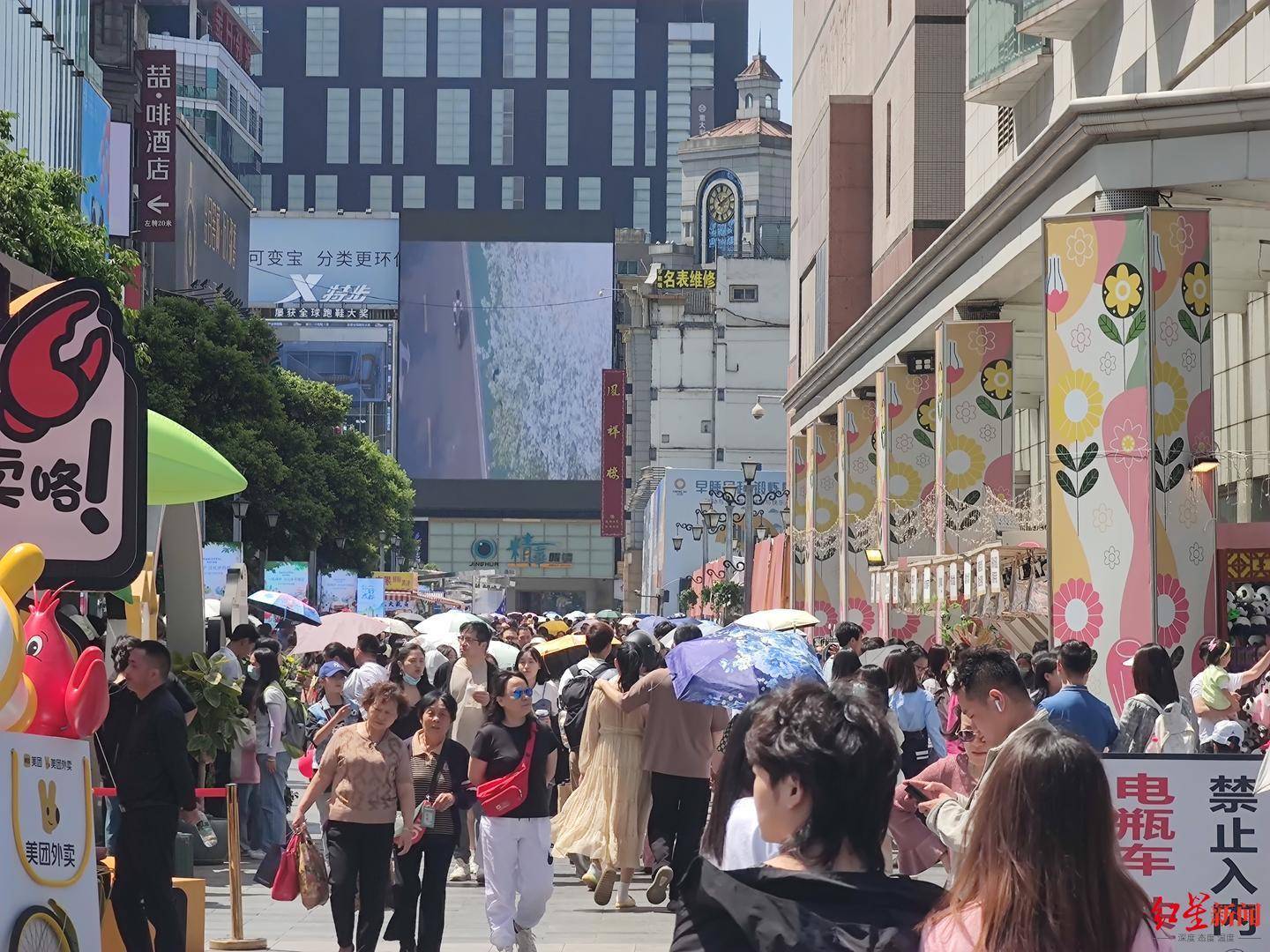 小长假第一天“1.五月天,成都春熙路人头攒动