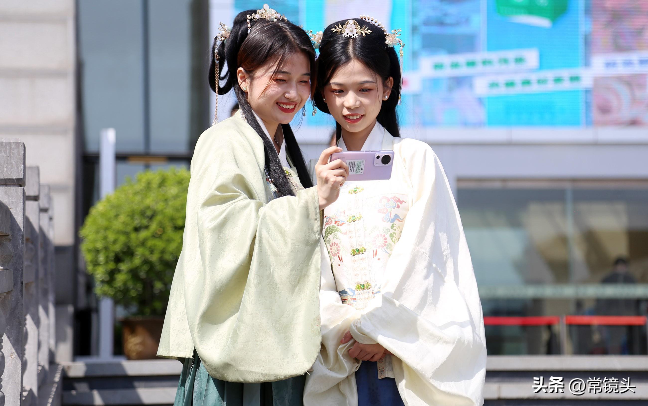 美丽的小姐姐在老城最美的地方精心打扮,晚上拍照登记。数据显示,4月以来,洛阳汉服体验订单量增幅居全国城市第二位,全市为游客提供汉服体验的商户数量同比增长3倍多.年。最有意思的是,由于汉服租赁业务的火爆,当地一些经营餐厅、轮胎店的商家纷纷换店,将店面改成汉服体验馆。