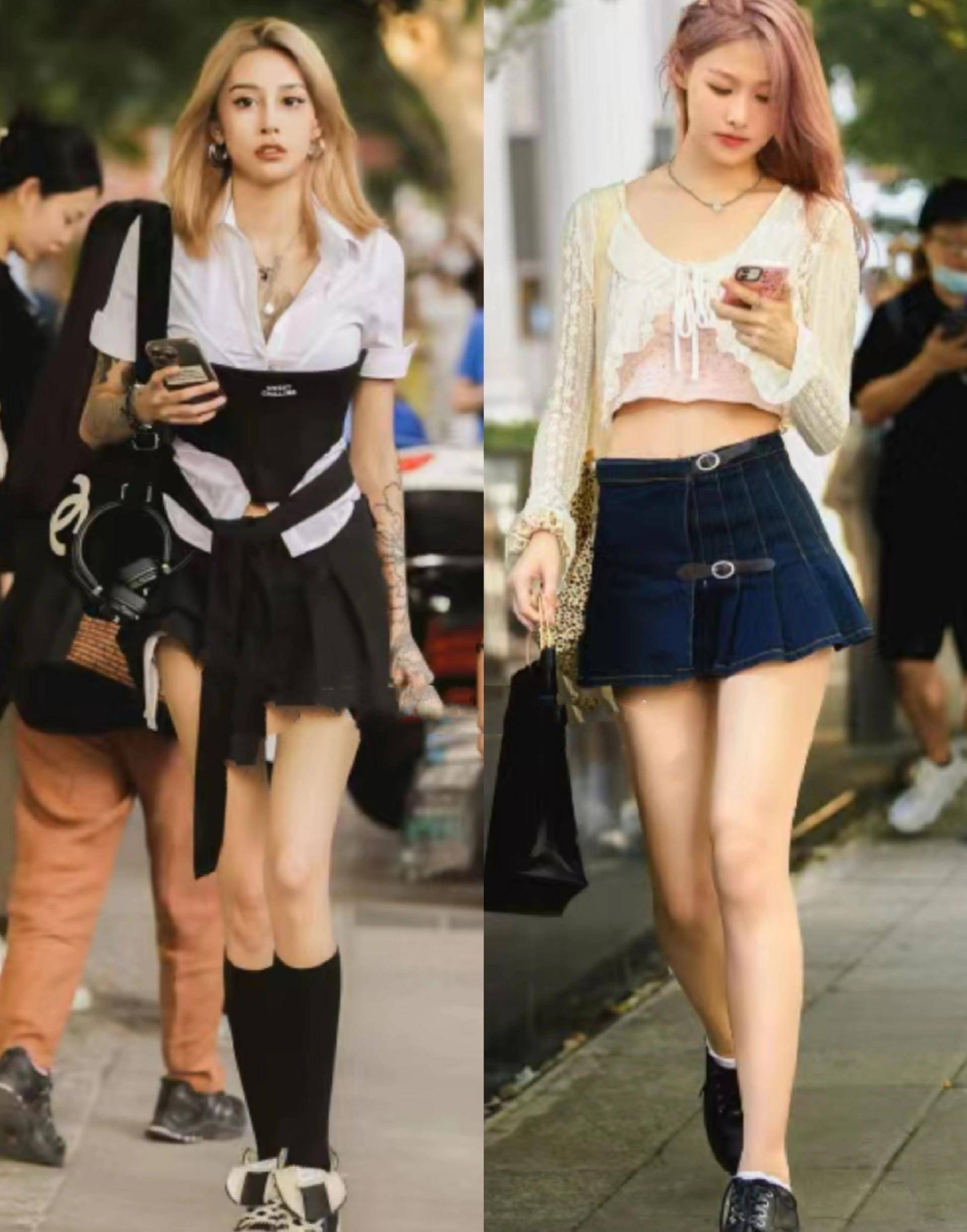 其次,短裙也是不可忽视的单品。短裙可以展现女性的曲线美,也可以让人看起来更加清爽。不过在深圳的街拍中,我发现很多人会选择短裙搭配牛仔裤或者T恤。这样的搭配让人看起来很休闲又不失时尚感。