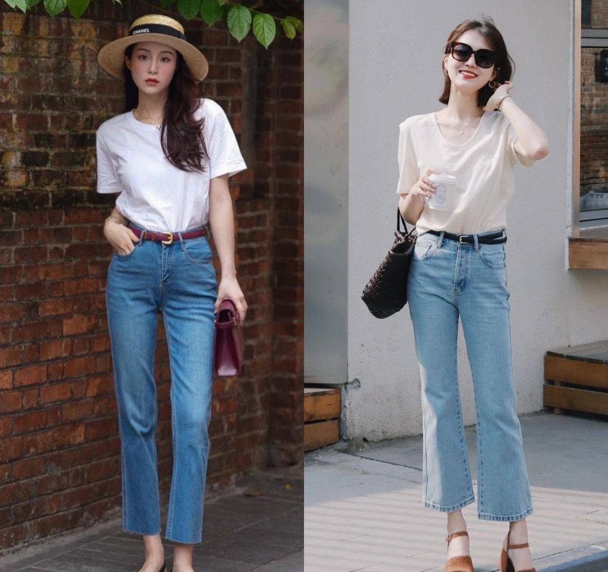 ①.裁剪上衣和牛仔裤看起来又高又瘦