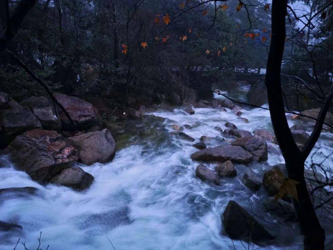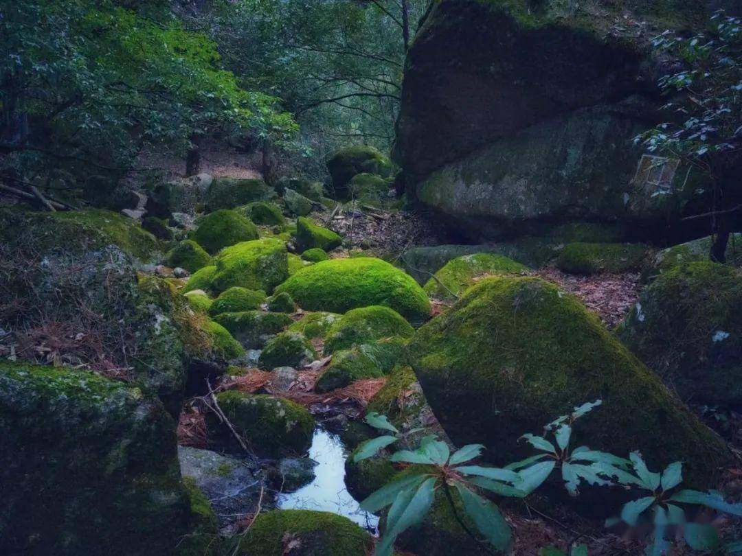 云谷寺有一条古磴道,由于长时间无人行走,青苔长满了石阶,颇有一番“苔痕上阶绿,野径无人知”的趣味。潺潺的溪水伴随古道,一直流往风景的深处。这溪水,干净得让你忍不住想捧在手心。溪谷的卵石被水流冲击,形成了各种形态,圆润而古朴。