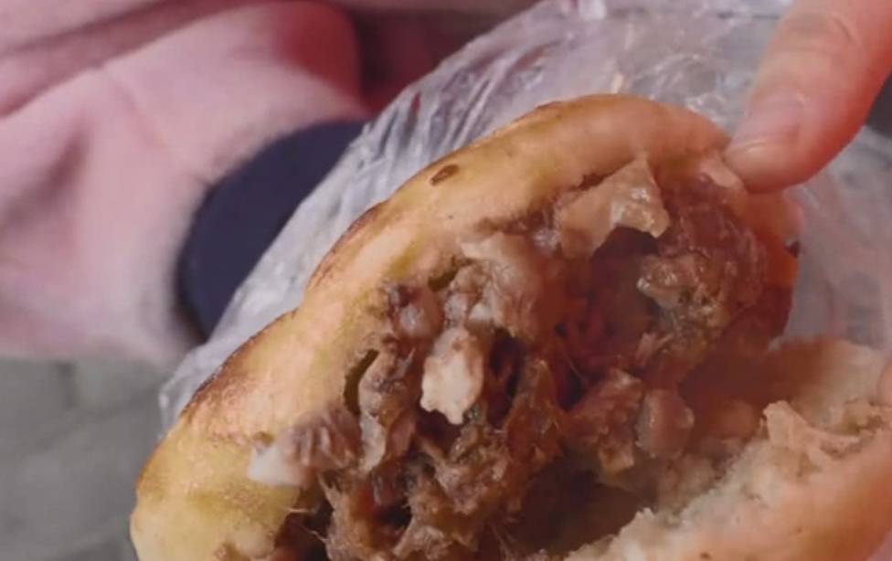 这个小摊是大叔开的,因为生意太好了,所以全家人都来帮忙,但依旧是忙到根本停不下来啊。而大叔每天都会很早起来炖牛肉,一直炖到出摊这牛肉才会软烂,而小摊上大妈就负责揉面烤馍馍,大叔就负责剁肉,分工很明确。一般来说,大叔每天都要剁200斤牛肉,做近千个肉夹馍,可见这生意有多火爆了。