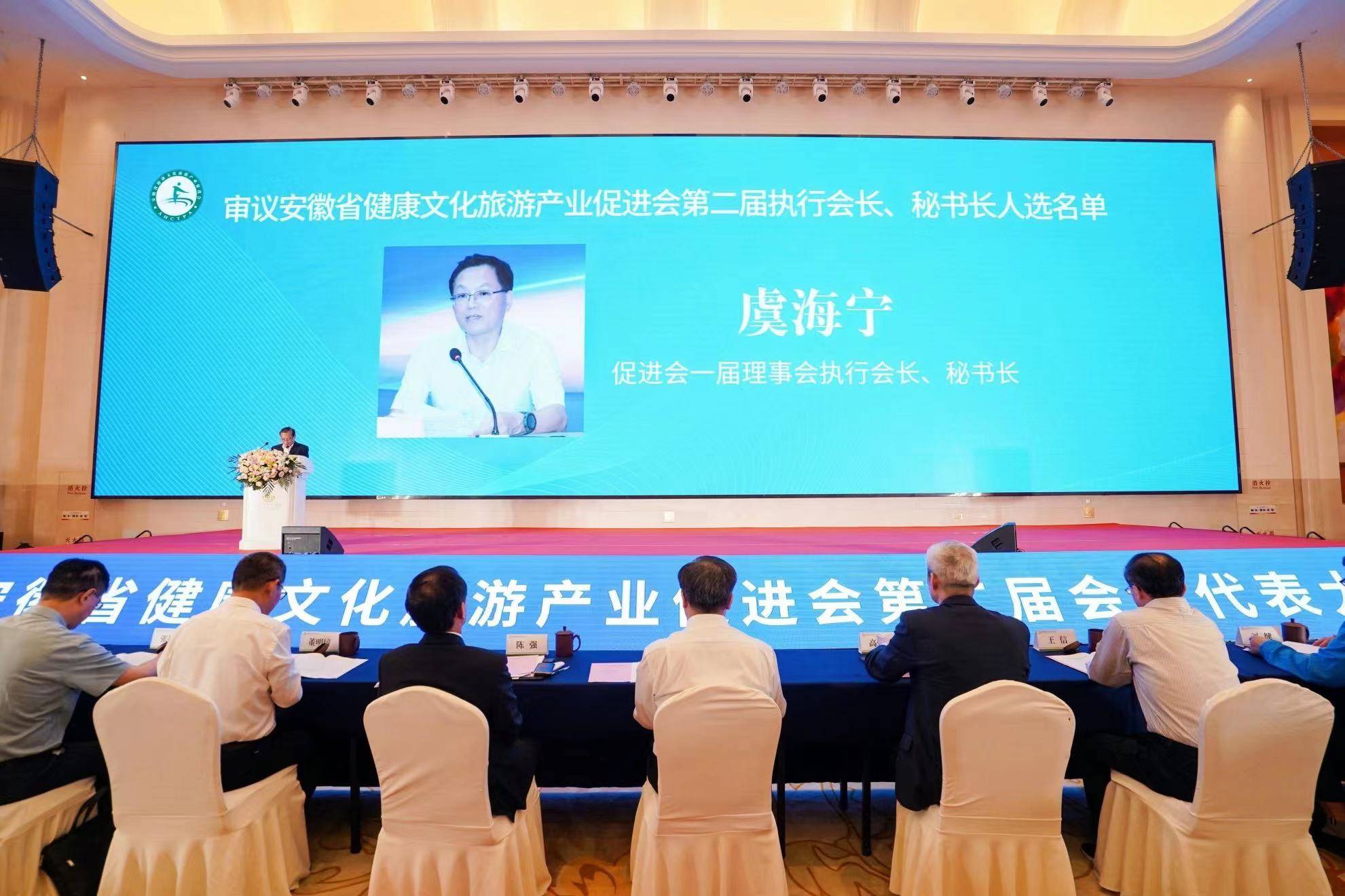 2023年6月6日,安徽省健康文化旅游产业促进会第二届会员代表大会暨第一次理事会在合肥市白金汉爵大酒店举行。省人大常委会副主任韩军,省卫健委一级巡视员董明培,省民政厅党组成员、副厅长、省社会组织综合党委书记张振粤,省审计厅一级巡视员、省社会组织总会会长贾宝明,省文旅厅副厅长王靖,省经济和信息化厅总经济师潘峰、省体育局党组成员、副局长秦旭及部分退休领导莅临大会现场。