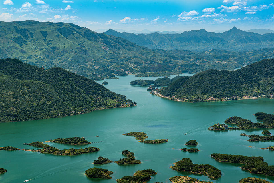 湖北省黄石市阳新县历史优秀、山川秀美,旅游资源不胜枚举:仙岛湖、天空之城、枫林地心大峡谷等,还有一道道特色美食:太子豆腐、玉堍油面、沙地折子粉等。其中,享有“荆楚第一奇湖”美誉的仙岛湖,星罗棋布,盈盈一水间不是仙境胜似仙境,更与杭州千岛湖、加拿大金斯顿千岛湖并称“世界三大千岛湖”。