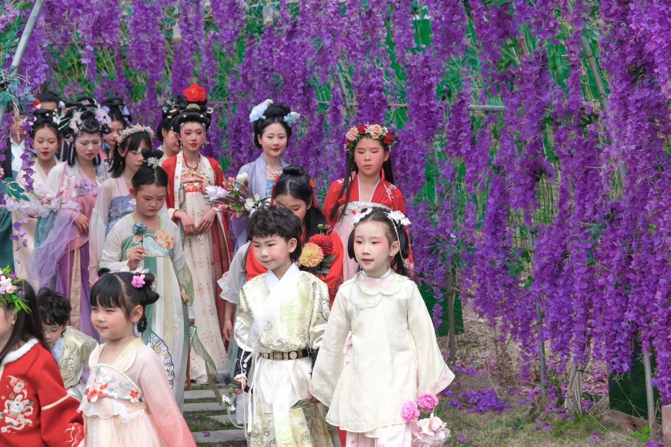 口腹之欲得到了满足,是时候该饱饱眼福了。长桌宴之后的节目有一个充满春意的名字——花神巡游。“十二花神落人间,一半风雅一半仙”,点绛唇、描娥眉、理云鬓、着汉服,袅袅身姿、款款移步,与十二花童一道,经新港足球场、夏家桥、 安溪 村花千谷、 安溪 古镇、物种起园、儿童公社,最后抵达 安溪 阁。