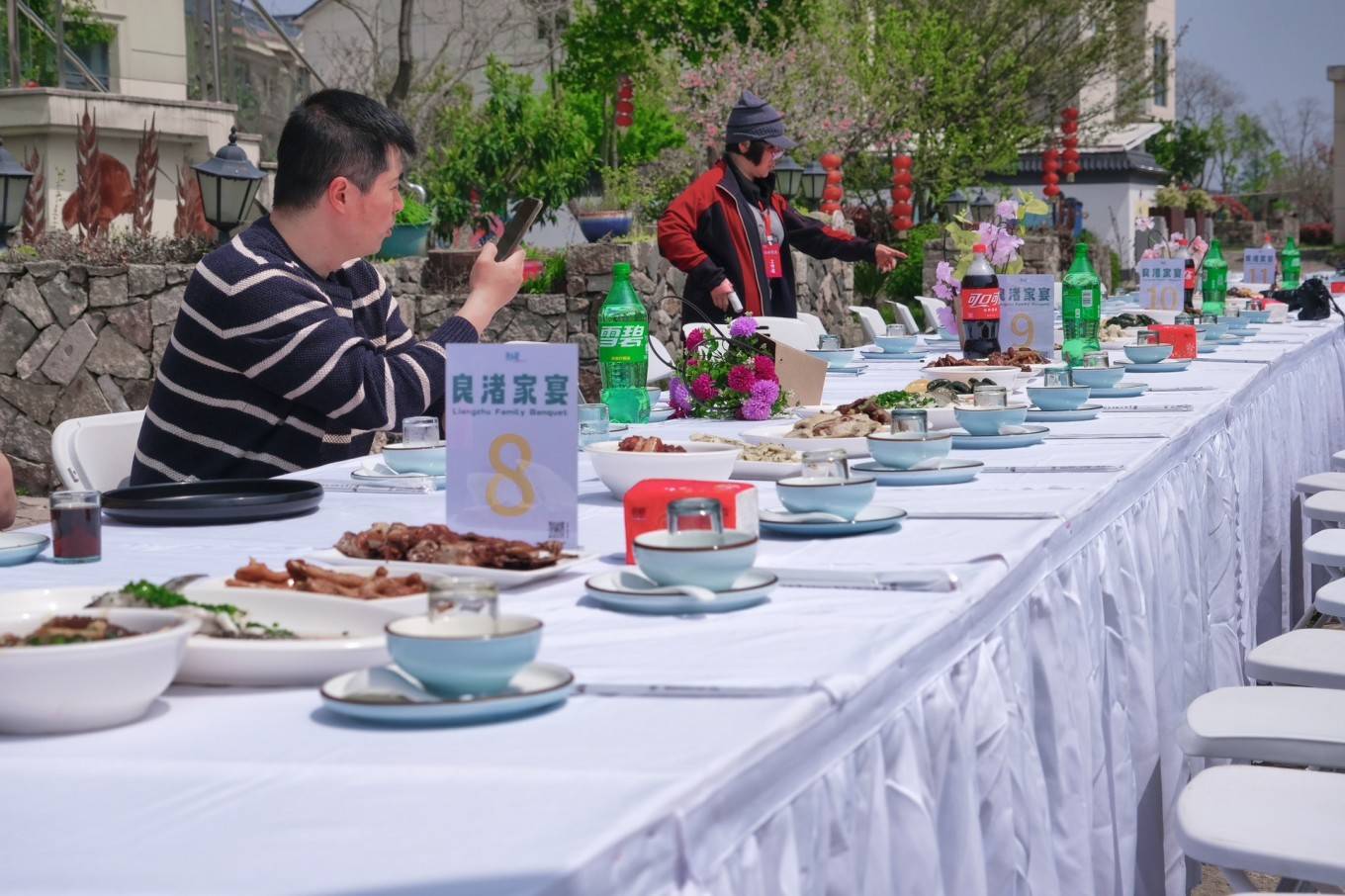 良渚人擅长将食物与文化相融合,一代代的良渚人都致力将“饭稻鱼羹”的良渚传统传承并发扬。开幕式之后我有幸品尝到了良渚当地的特色——长桌宴。一溜桌子并排铺开,瞅准空位就可落座,即使你我皆为陌路,也不妨碍我们同桌围坐、大块朵颐。