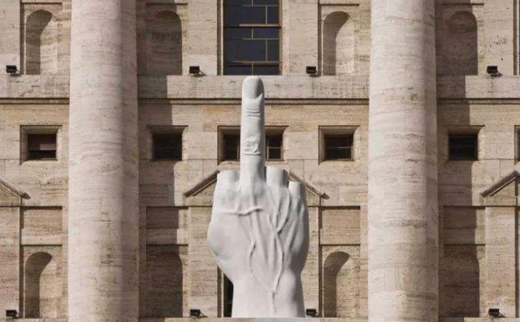 卡特兰的作品本身,就是满满的讽刺感和深刻的隐喻,他嘲弄艺术、嘲弄自己、嘲弄世人。