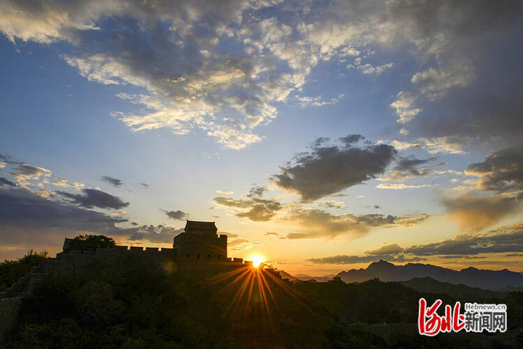 6月5日傍晚,河北省承德市滦平县金山岭长城景区短时降雨过后,夕阳西下,云霞满天,绚烂多彩,蔚然壮美如画。河北日报通讯员周万萍摄