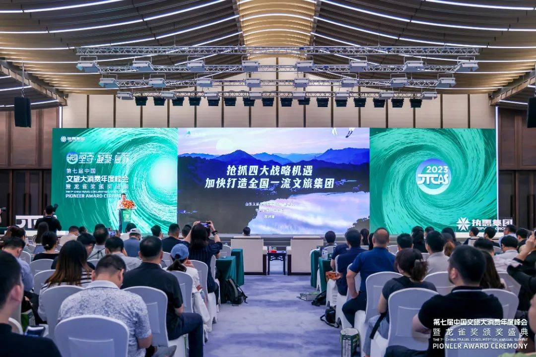 5月30日至31日,第七届中国文旅大消费年度峰会暨颁奖盛典在上海国家会展中心成功举办。本届大会由中国龙雀奖大消费组委会主办,执惠集团、上海博华国际展览有限公司协办,以“坚守·凝聚·复苏”为主题,汇聚了上千名与会嘉宾及行业媒体机构,省市级文旅集团、投资机构、目的地政府、OTA、规划设计、新业态企业、数十家省级旅游协会等企业或机构代表参会,特邀嘉宾及行业专家以主旨演讲、圆桌论坛、高端对话、颁奖典礼、答谢晚宴等形式探讨新形势下文旅消费新趋势、文旅发展新走向,结合新产品、新业态、新营销等话题,为文旅产业发展提供洞见参考。山东文旅集团党委书记、董事长高洪雷受邀出席,并以《抢抓四大机遇 加快打造一流文旅集团》为题发表演讲。