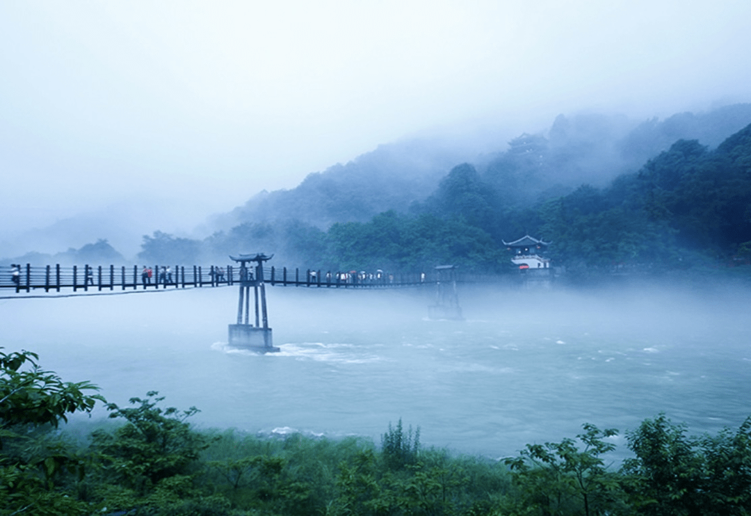 一座山,幽甲天下,蕴藏人间智慧;一道堰,利在千秋,造就天府之国。都江堰位于四川成都平原西部的岷江上,建于公元三世纪,是李冰及其子率众修建的一座大型水利工程,是全世界至今为止,年代最久、唯一留存、以无坝引水为特征的宏大水利工程。主要的景点有伏龙观、二王庙、安澜索桥、玉垒关、离堆公园等,“天府之国”的美誉,离不开此项伟大的工程。青城山处于都江堰水利工程西南10千米处,是国家5A级景区,中国道教名山。山内古木参天,群峰环抱,四季如春,故名青城山。青城山以独特的自然风光和深厚的道教文化底蕴吸引着众多国内外游客,其天人合一的哲学理念,彰显着东方智慧。