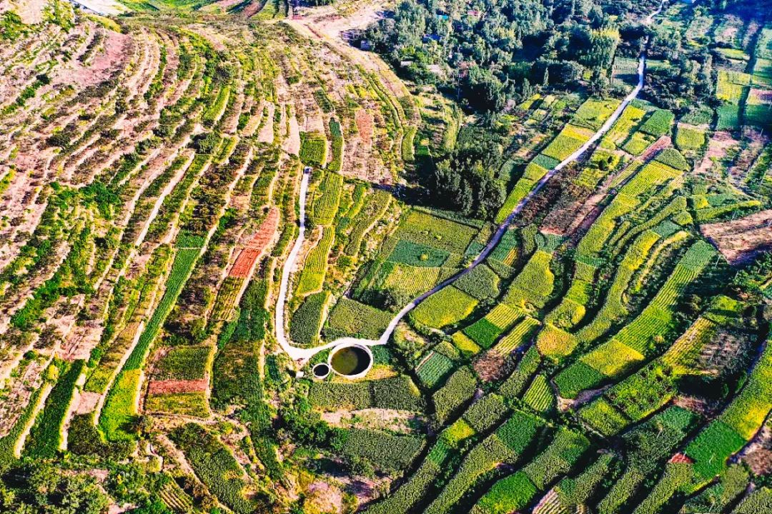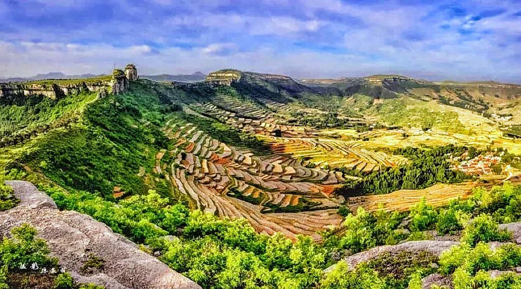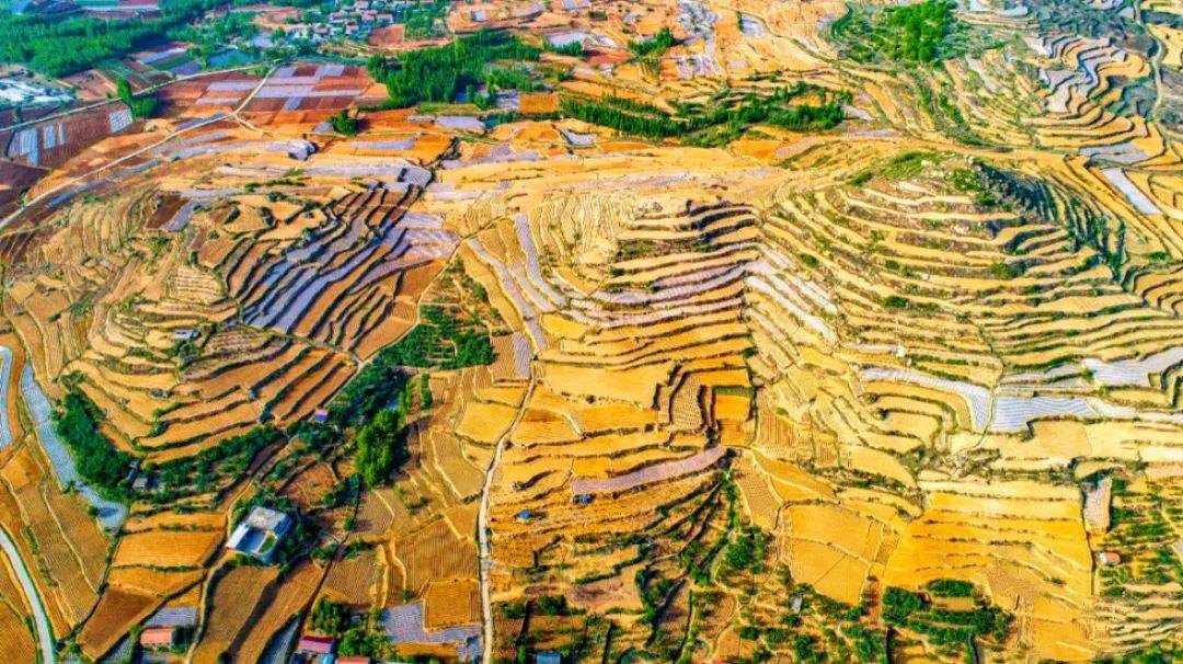 这里被称作北方最美旱田,每年芒种的麦收时节,满目金黄披在山坡上,层层叠叠,形成不规则的色块,蔚为壮观。