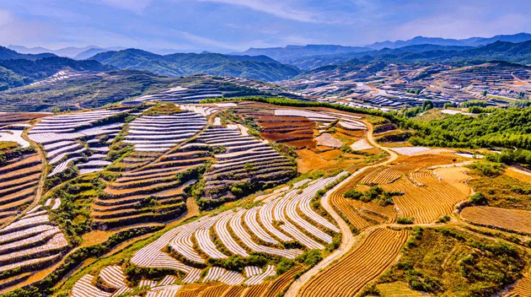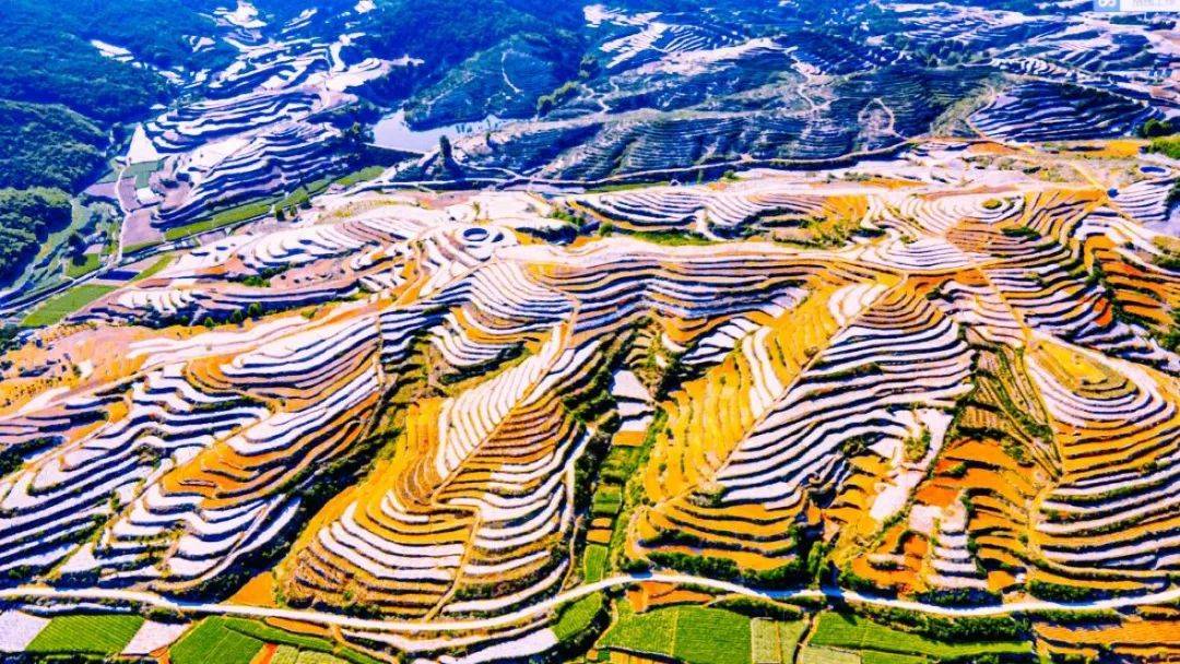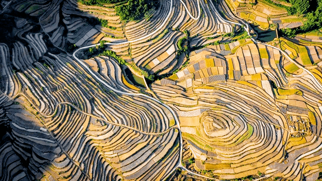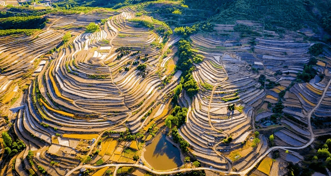 || 关于梯田:梯田是在丘陵山坡地上沿等高线方向修筑的条状阶台式或波浪式断面的田地。从秦汉开始,先人们就开始修筑梯田以提高土地利用效率,解决粮食问题。