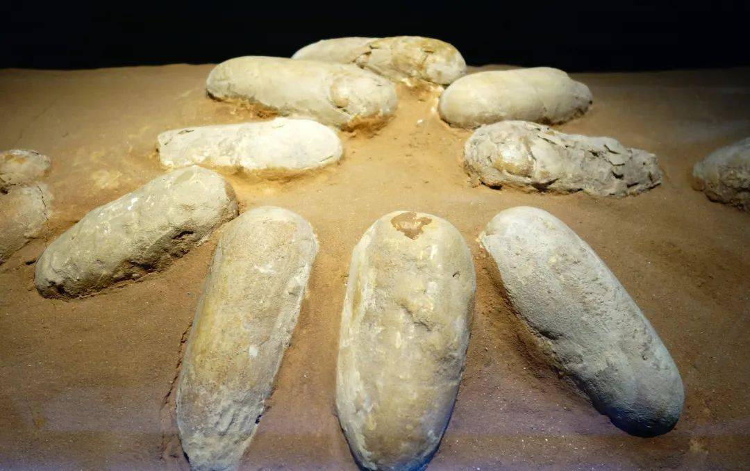 △巴彦淖尔乌拉特后旗巴彦满都呼出土的晚白垩世长形恐龙蛋化石。