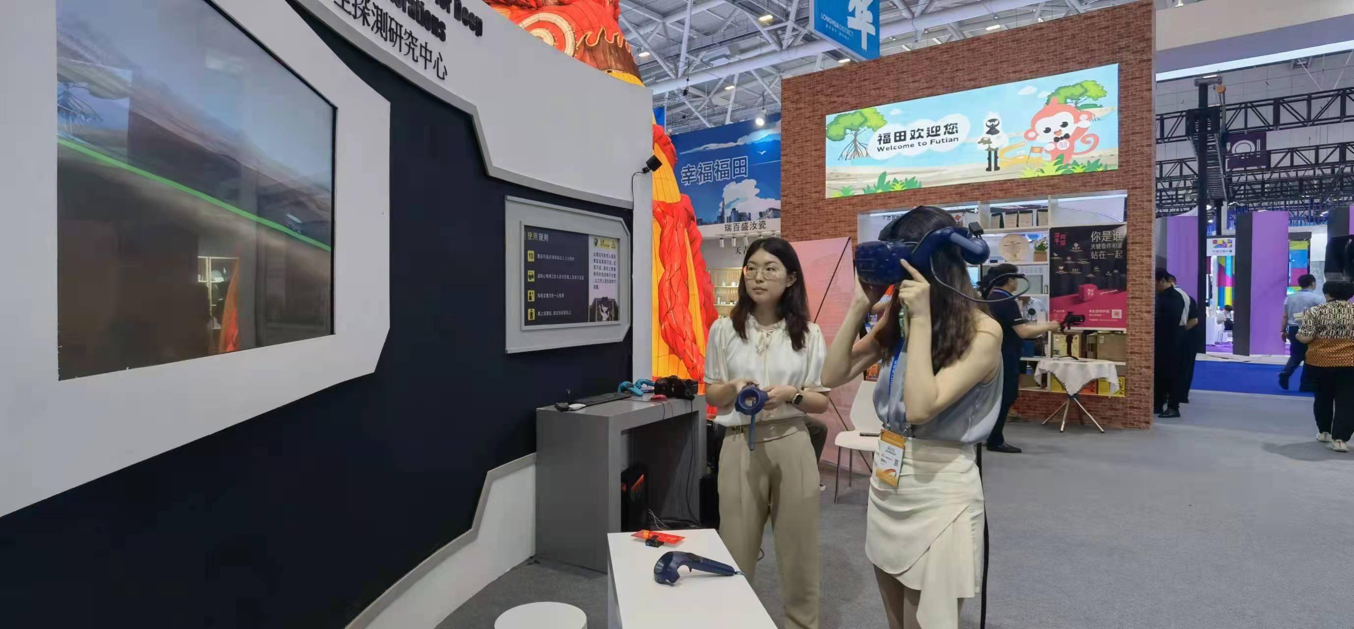 值得一提的是,福田展区将科技+文化作为此次布展的重点,引入香港理工大学深空探测研究中心行星遥感实验室吴波教授及其团队开发的“月球、火星着陆区虚拟实境系统”,游客可通过VR设备体验“嫦娥四号”以及“天问一号”在不同着陆下降阶段的三维实景以及着陆后的月球与火星表面场景。
