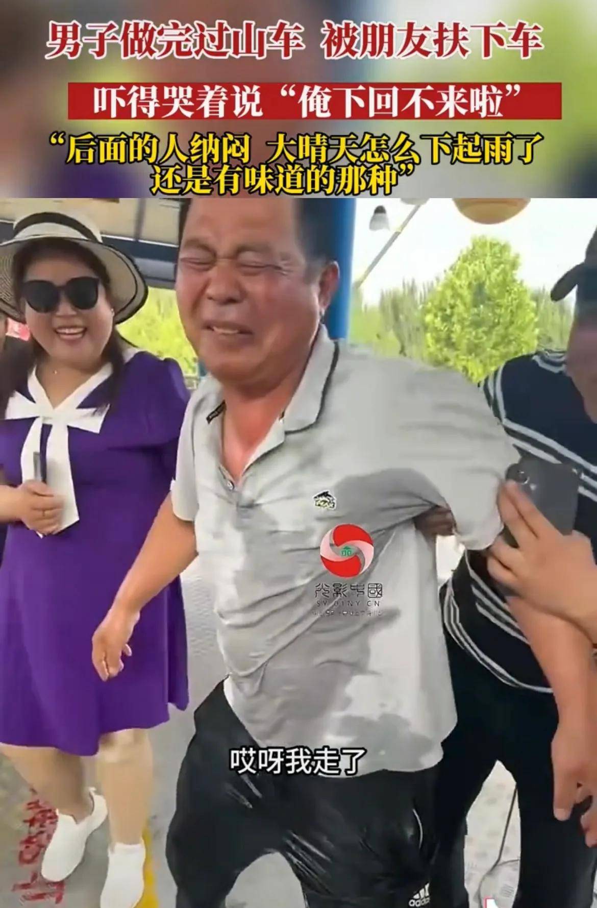 6月5日,山东,一段大叔坐过山车,吓得哇哇大哭,浑身湿透的视频冲上热搜,引起无数网友的围观和吐槽。有网友说,原来真有吓尿的情况。