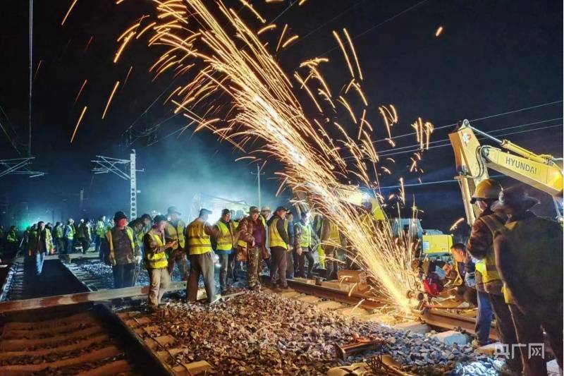 青藏铁路西格段提质工程施工中(央广网发 李万里 摄)