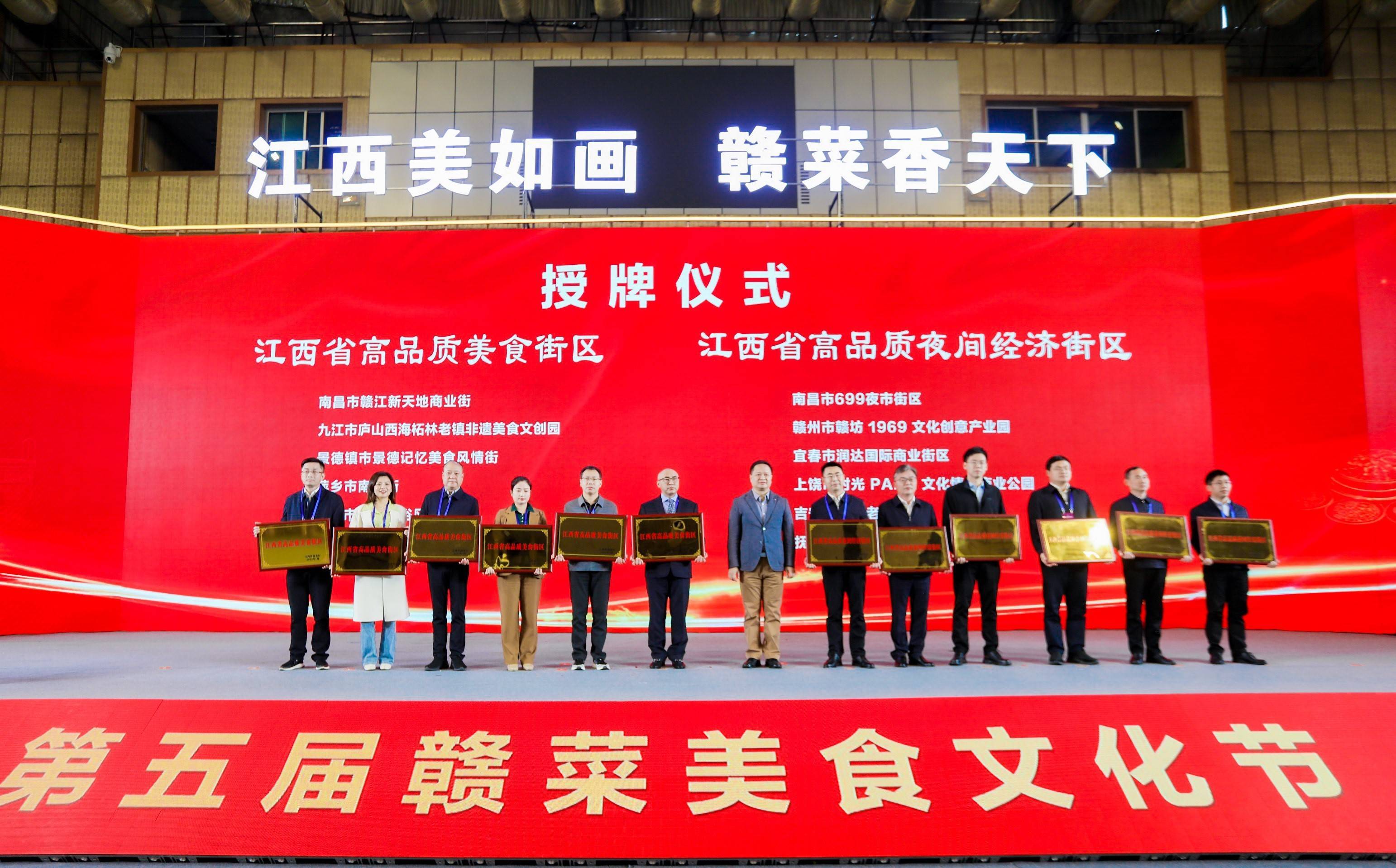开幕式上,世界中餐联合会授予赣州市“国际客家美食名城”称号。江西省商务厅为全省首批6个省级高品质美食街区和6个省级高品质夜间经济街区授牌。此外,还举行了重点项目集中签约仪式,共签约合作项目20个,签约金额129.3亿元。