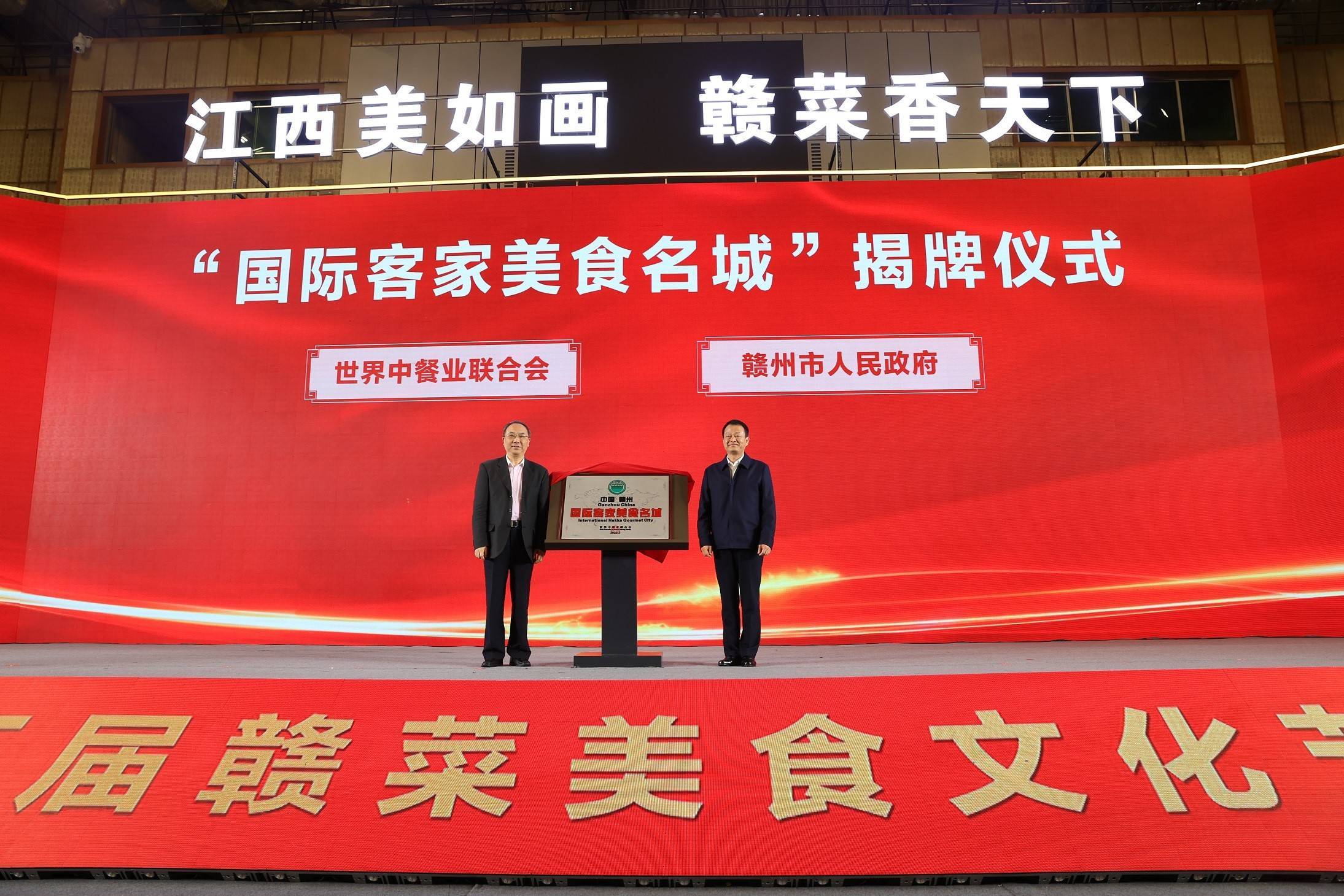世界中餐联合会授予赣州市“国际客家美食名城”称号。图/赣州市商务局 提供