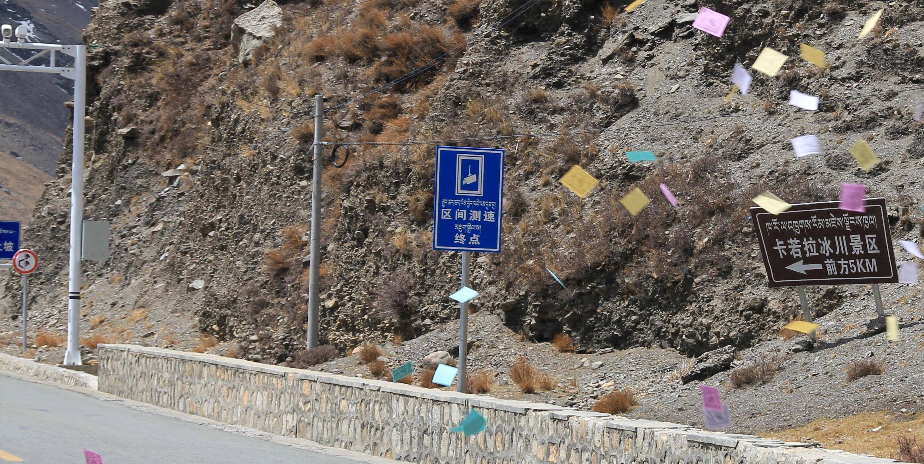 用完午餐后继续前行,约下午十三时到达G349公路一路侧停车场,导游告诉卡若拉冰川到了,于是大家一起下车步行前往观看公路另一侧的“卡若拉冰川”(打引号的原因,读完本文就明白了)。