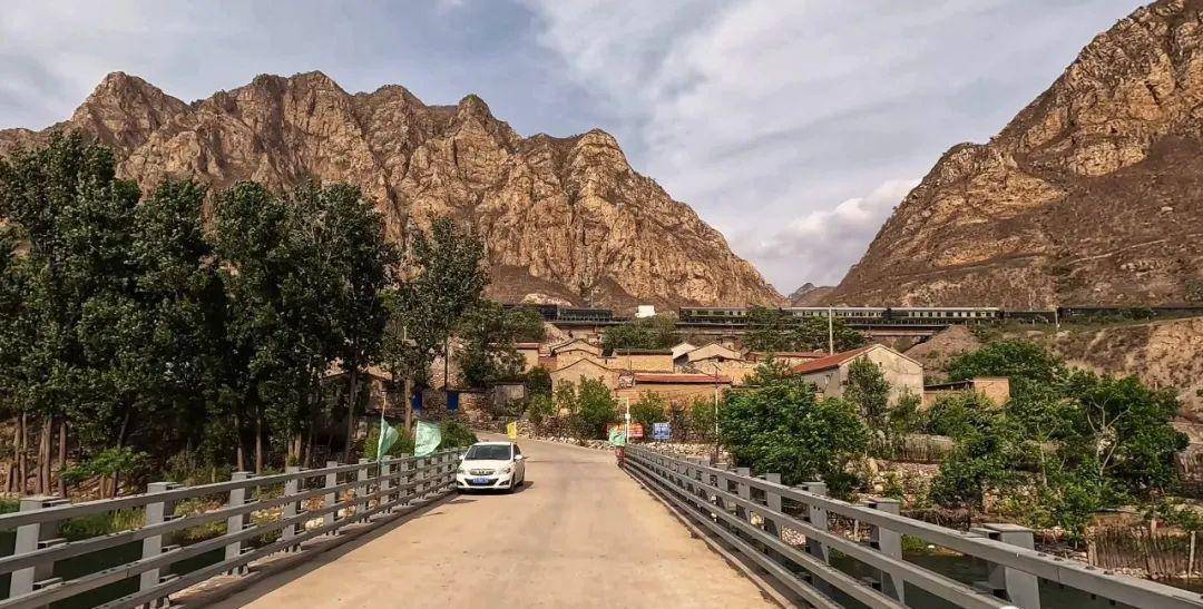 我在桥上看那火车呼啸而过,正欲驾车进村时,对向来了一台车,行至我跟前,司机大叔摇下车窗热情地问我去哪里玩,说村子就是路的尽头了,村里也没什么可逛的,我要是也想去挂壁公路,就跟在他后面走,他们刚问过了路,出村在岔路口向右上山的路就是通往挂壁公路的。