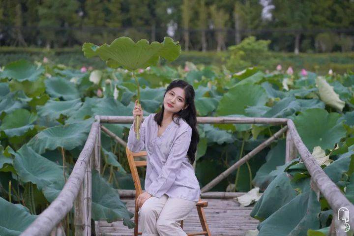 荷塘中间贴心装置了走廊和凉亭,所以不用坐船就能实现零距离赏荷。现成的天然背景和道具,不拍一组夏日荷塘大片回去,就太亏了。工作人员还贴心地在一些打卡点放置了椅子作为拍摄道具,拍摄体验感满分。