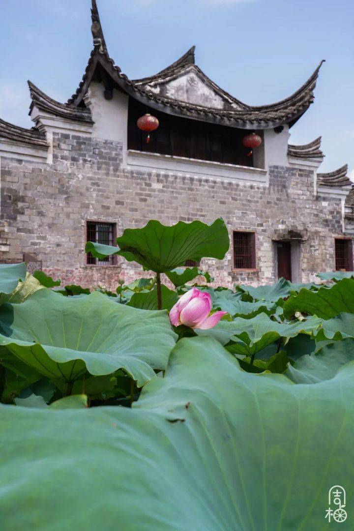 当独特的明清古建筑与荷花相遇,在马头墙的映衬下,古韵清幽,独有诗意。池中央有二条石砌的桥,等荷花开放时,人走在桥中,犹如飘在荷花中间,颇有几分仙气。