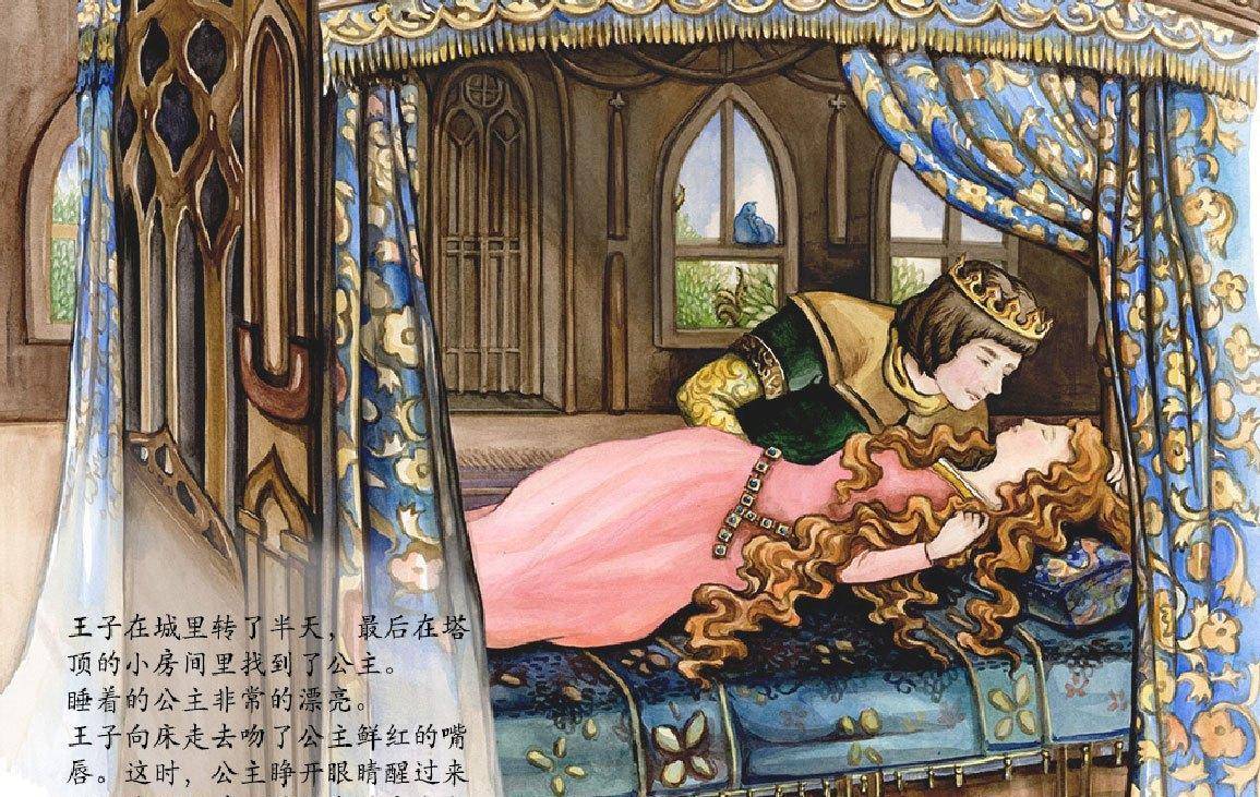 直到一个王子经过了公主沉睡的森林,看见了公主绝美的容颜,心生爱慕才把公主唤醒。