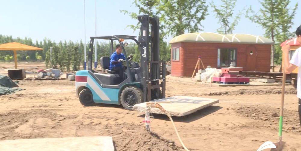 走进平原县山东盛堡特色小镇二期项目现场,记者看到,工人们正在对游乐场地面进行花砖铺设,一派忙碌的场景。
