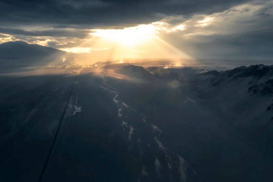 云层厚重,远山如黛,天地之间,万缕金光倾泻而下,让万物同沐光辉,而这,就是光的形状。
